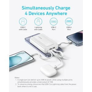 Anker Power Bank (10K,30W, Built-In USB-C+Lightning Cable)