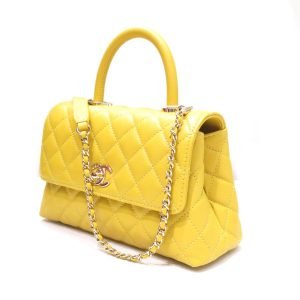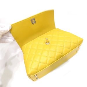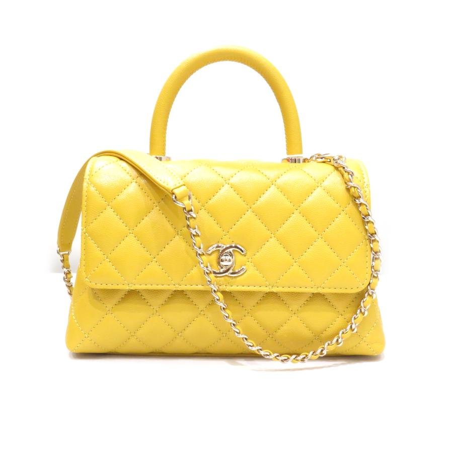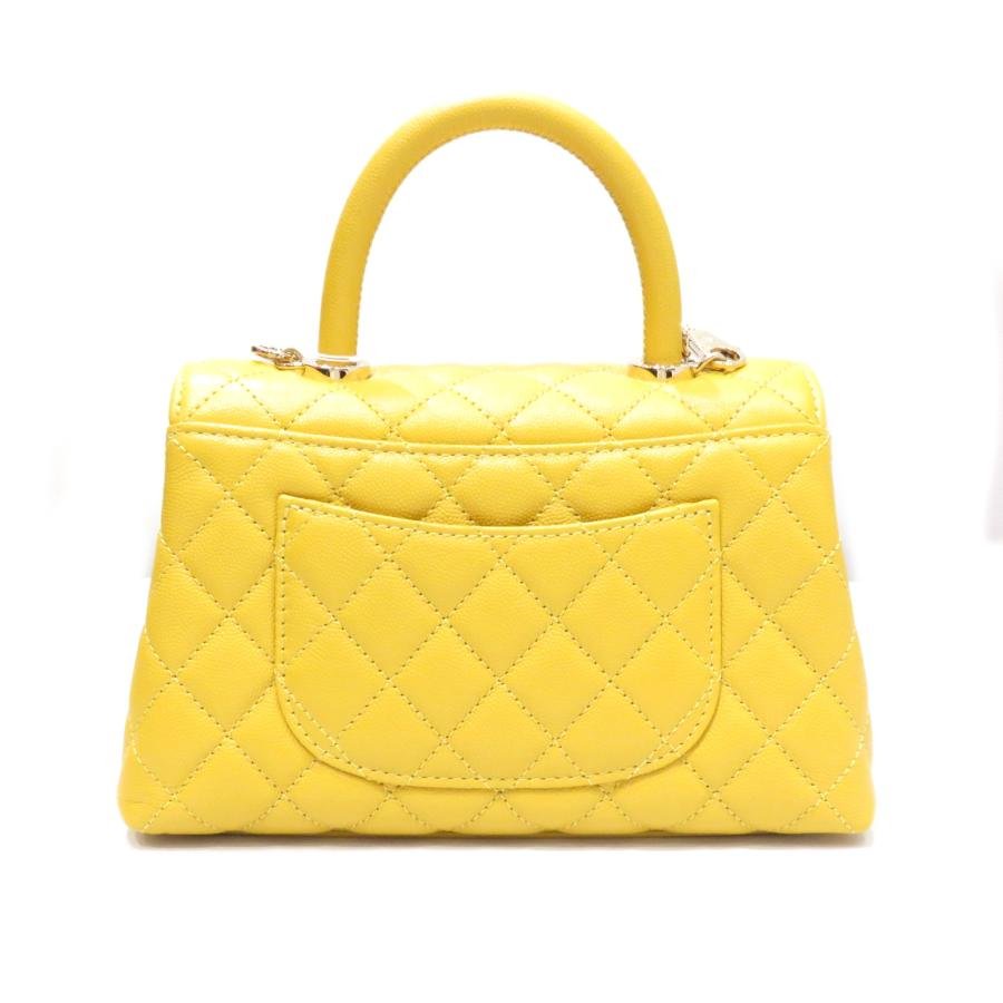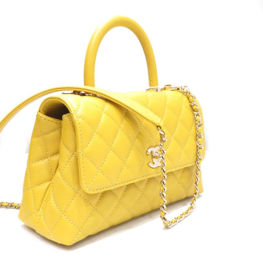 CHANEL Coco Handle Mini Flap Bag AS92990 Yellow/S Metal Hardware Caviar