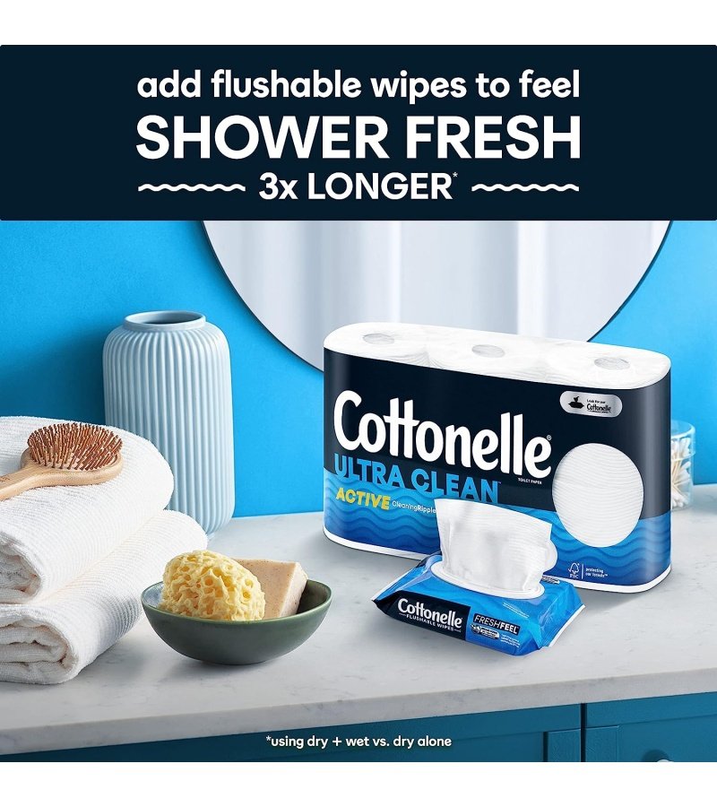TOILET TISSUE FOR A HEALTHY CLEAN: Use Cottonelle toilet paper and Cottonelle flushable wet wipes together for a refreshing. shower fresh clean.