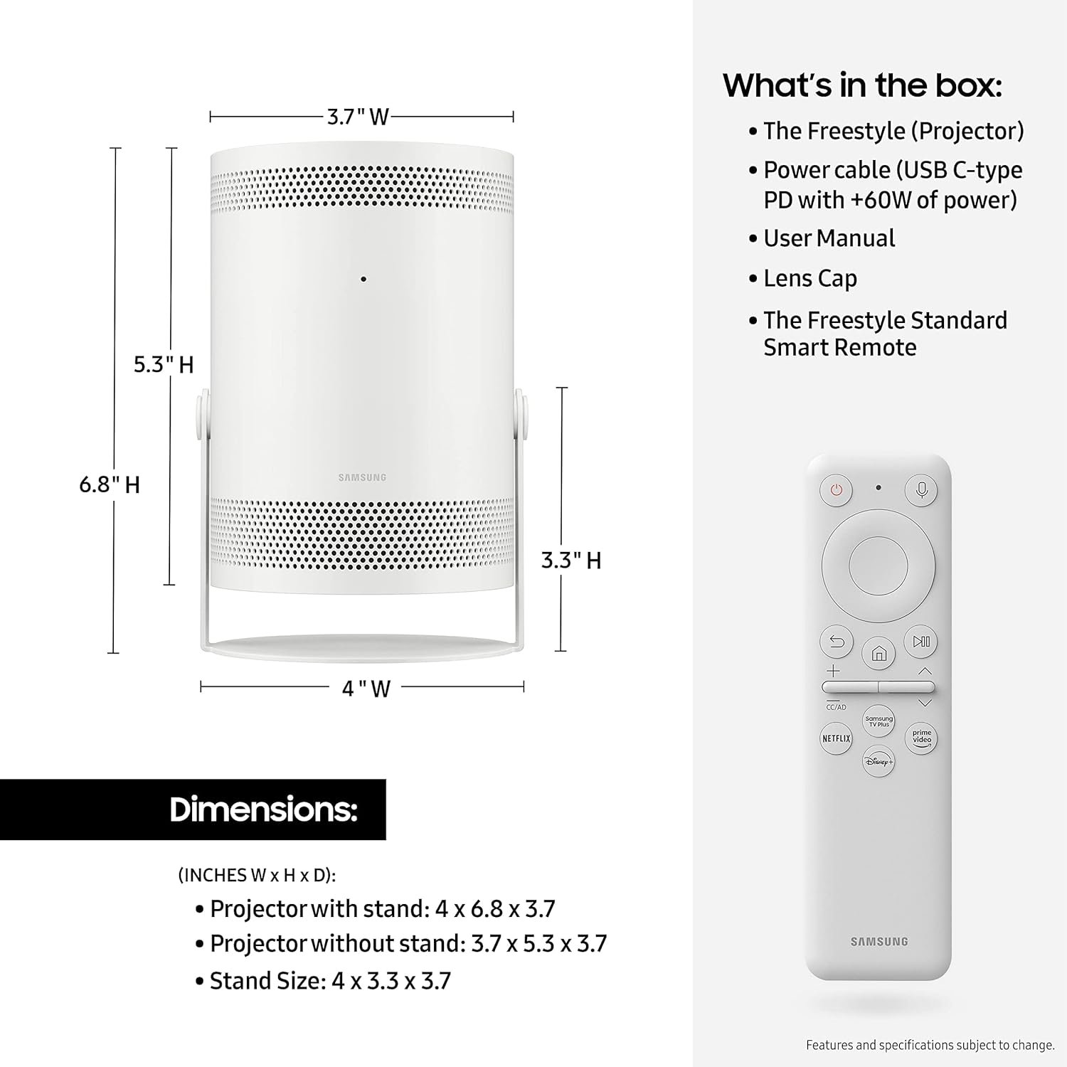 Exclusive for New Users[Just $1.99]:SAMSUNG 30″ – 100″ The Freestyle FHD HDR Smart Portable Projector for Indoor and Outdoor Home Theater, Big Screen Experience with Premium 360 Sound w/ Alexa Built-In (SP-LSP3BLAXZA)