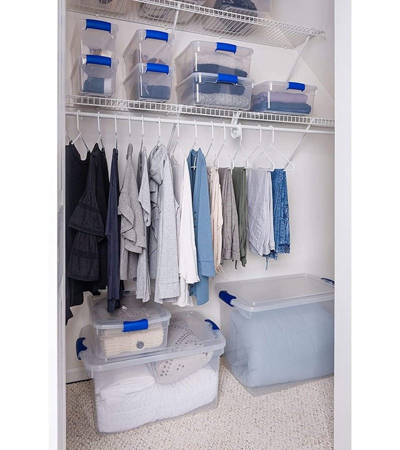 2 PACK OF STORAGE CONTAINERS: Pack of 2. 66-quart containers offers the perfect storage solution for storing holiday decor. linens. clothes. craft supplies. toys. and other household items