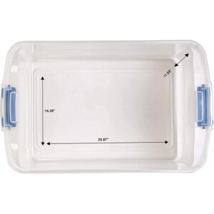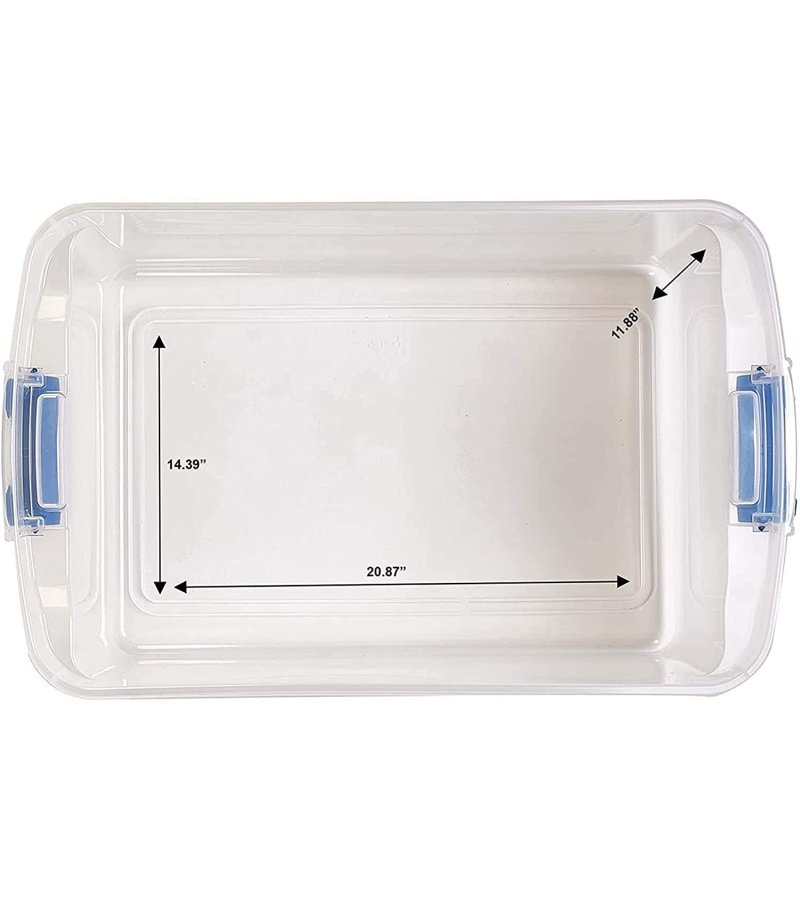 STACKABLE: Deep recessed lid allows for secure stacking to maximize vertical storage space; Exterior Dimensions (L x W x H): 26.5 x 16.5 x 12.75 inches; Interior Dimensions (L x W x H): 20.87 x 14.39 x 11.88 inches