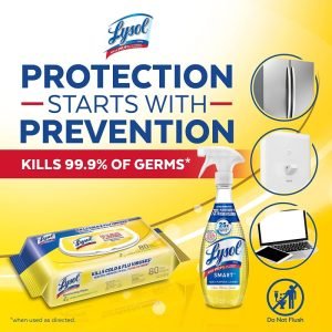 LYSOL MULTIPURPOSE DISINFECTION CLEANING BUNDLE: Contains 6 packs of Lysol Handipack Cleaning Wipes Lemon (80ct) and one Smart All Purpose Cleaner Spray Lemon starter kit