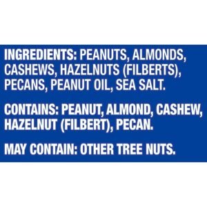 PLANTERS NUTS: This 56 ounce resealable jar of PLANTERS Mixed Nuts With Sea Salt contains about fifty-six 1 ounce servings and features a resealable lid designed to lock in long-lasting freshness