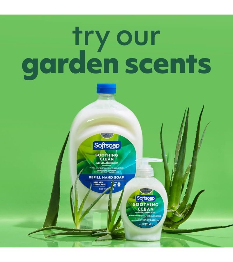 Give your hands the soothing experience of Softsoap Liquid Hand Soap. Soothing Aloe Vera. to keep your hands feeling moisturized and clean.