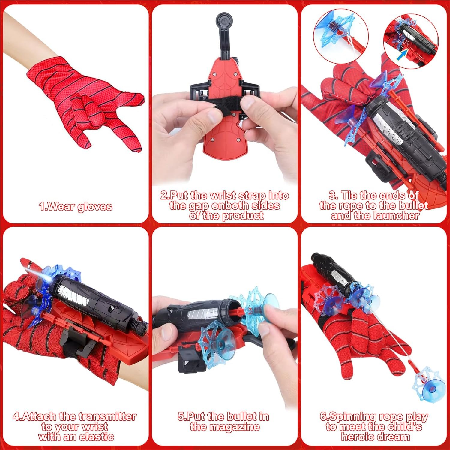 - 【Spider Glove Launcher Safe material】: Hero launcher wrist toy made of high-quality plastic material to ensure that it will not cause any harm to the user during play. At the same time, the spider silk it emits is also soft and will not damage furniture or harm the human body. Parents can let their children play with confidence.
